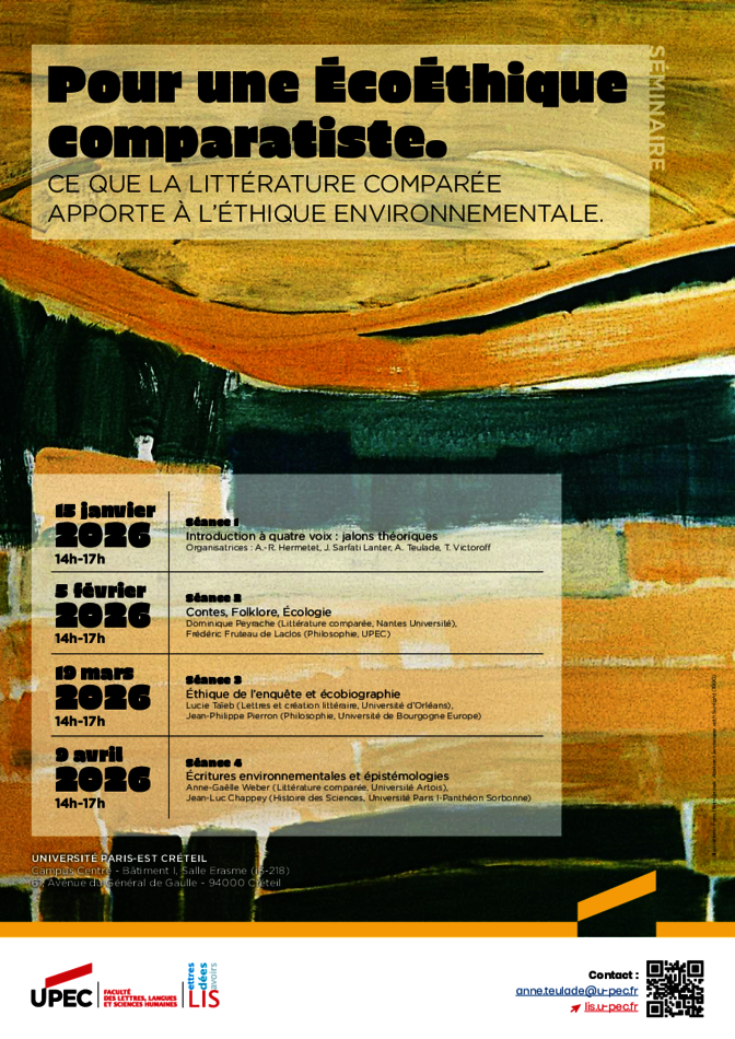 en présentiel à l’université Paris-Est Créteil, Bâtiment I, salle Érasme (I -3, 218), métro Créteil-Université (ligne 8)